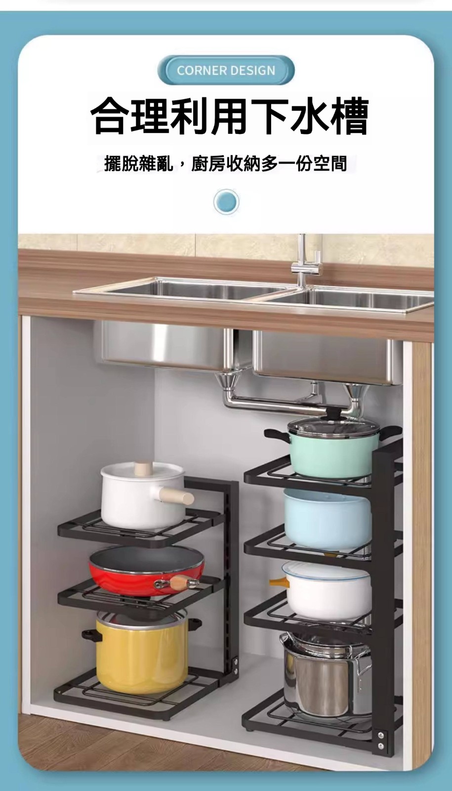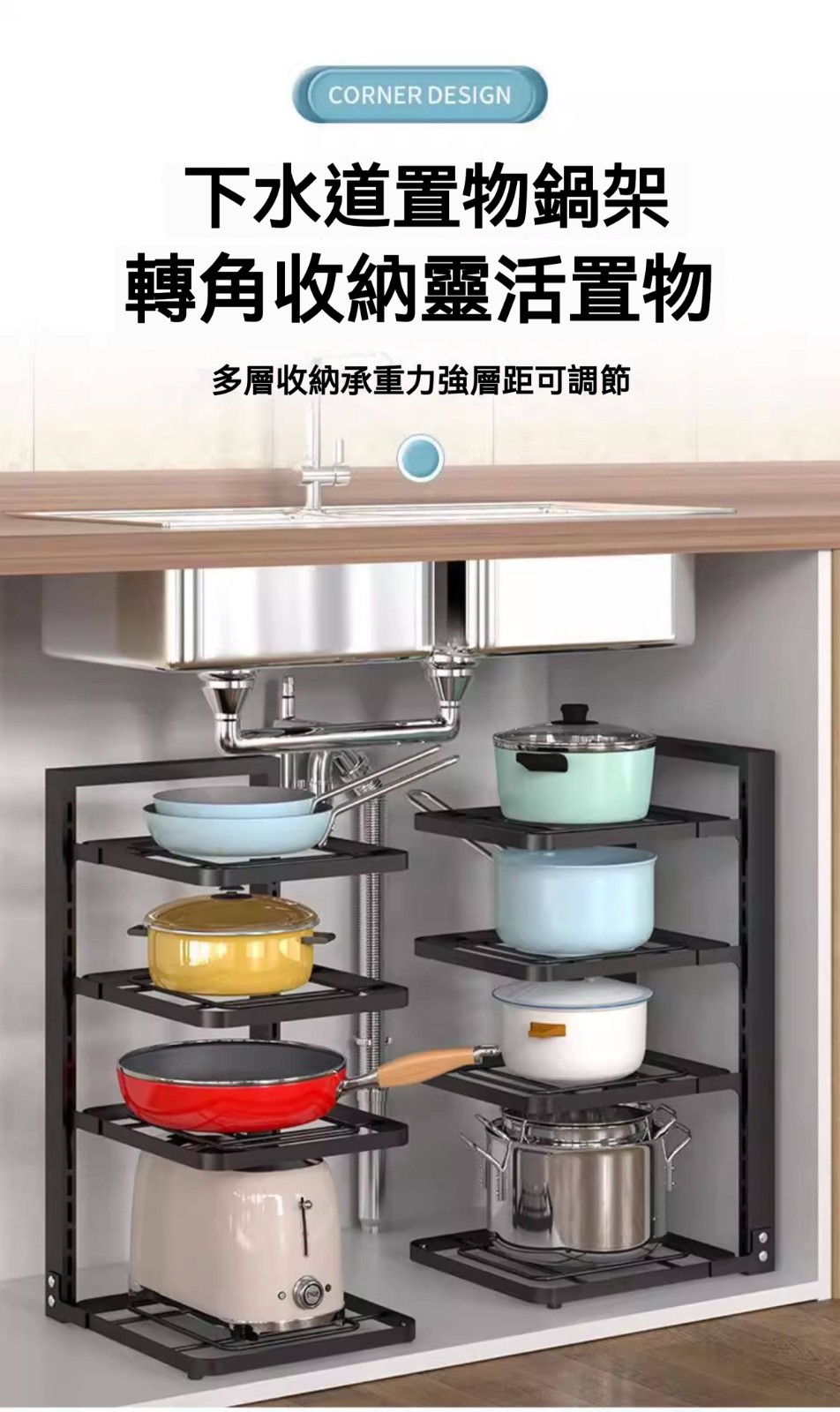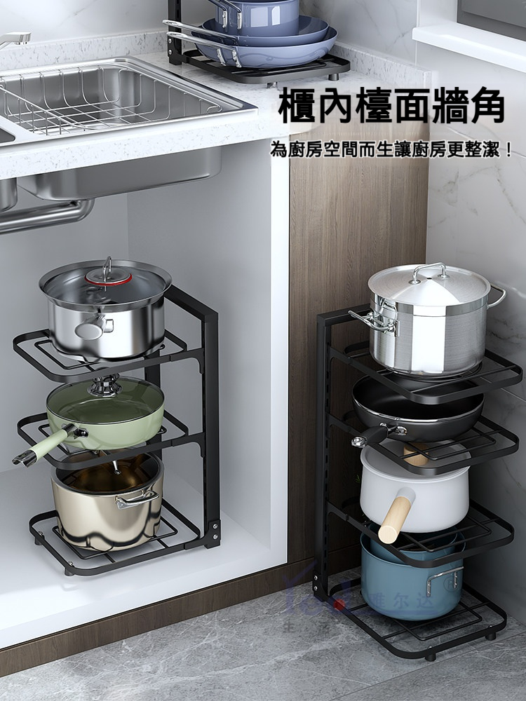 【台灣熱銷❤️】304不鏽鋼水槽下置物架 多層可調鍋具收納架 免打孔廚房櫃內分層架 伸縮式鍋架/廚具收納神器