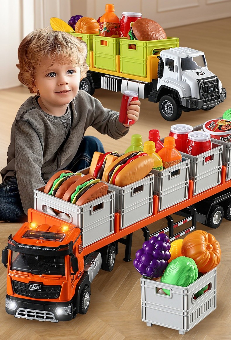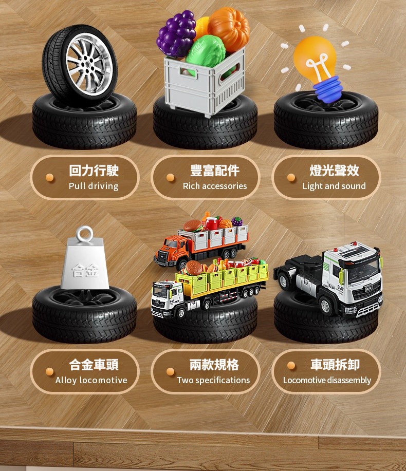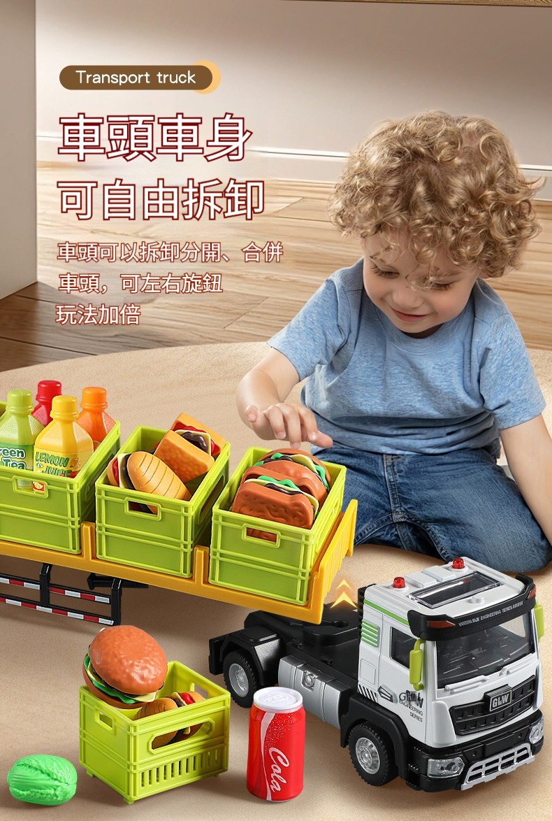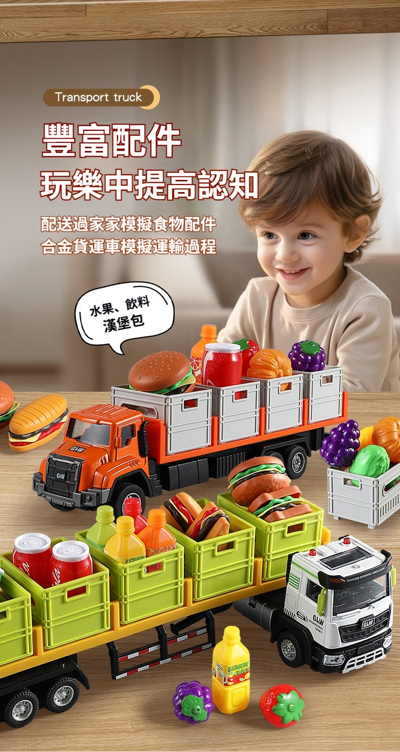 台灣熱銷❤️仿真合金運輸卡車玩具✨男孩最愛拖車貨櫃車模型 ✅台灣製造質感升級|合金車身+可動貨櫃|過家家角色扮演首選