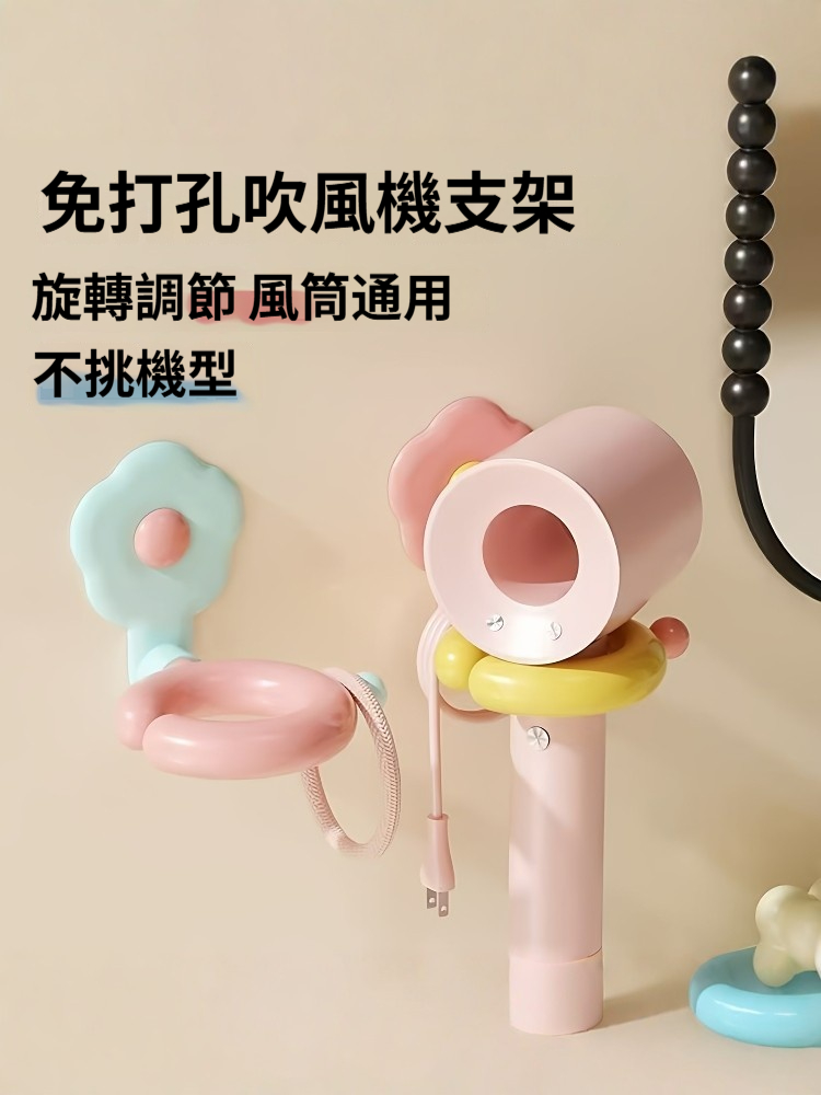 ✨日式小花朵吹風機支架❤️|多巴胺浴室收納神器 免打孔懶人置物架|風筒掛架・簡約防水設計